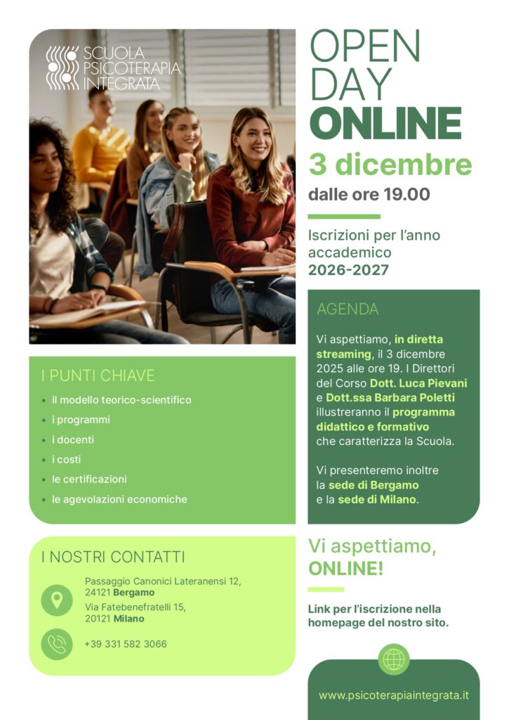 I Direttori del corso Dott.ssa Barbara Poletti e Dott. Luca Pievani illustreranno il programma didattico e formativo che caratterizza la Scuola. Vi presenteranno inoltre la sede di Bergamo e la sede di Milano e illustreranno il modello teorico-scientifico, i programmi, i docenti, i costi, le agevolazioni economiche e le nuove certificazioni delle tecniche fornite dalla Scuola. Riceverete una mail con la conferma dell'iscrizione e il link per seguire l'evento. Per iscriversi all'evento compilare il form sottostante, tutti i campi sono…